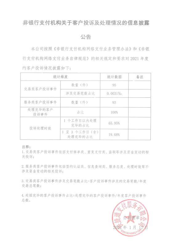 非银行支付机构关于客户投诉及处理情况的信息披露公告