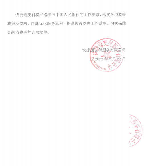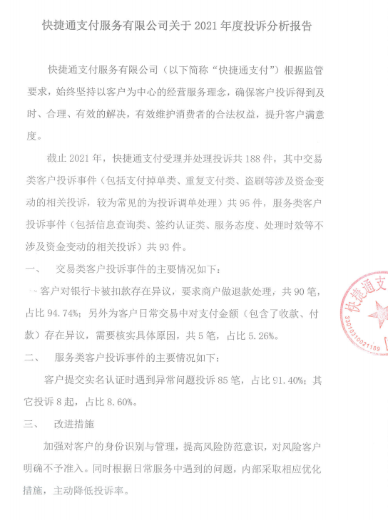 快捷通支付服务有限公司关于2021年度投诉分析报告