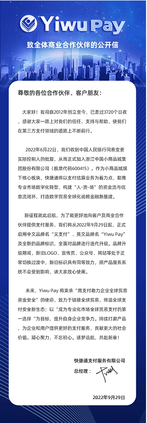 Yiwu Pay 致全体商业合作伙伴的公开信