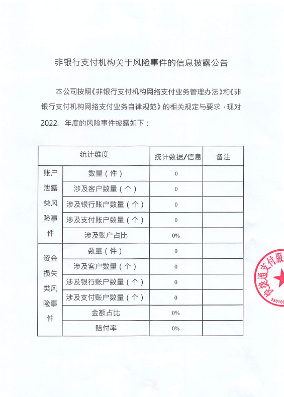非银行支付机构关于风险事件的信息披露公告(2022年)