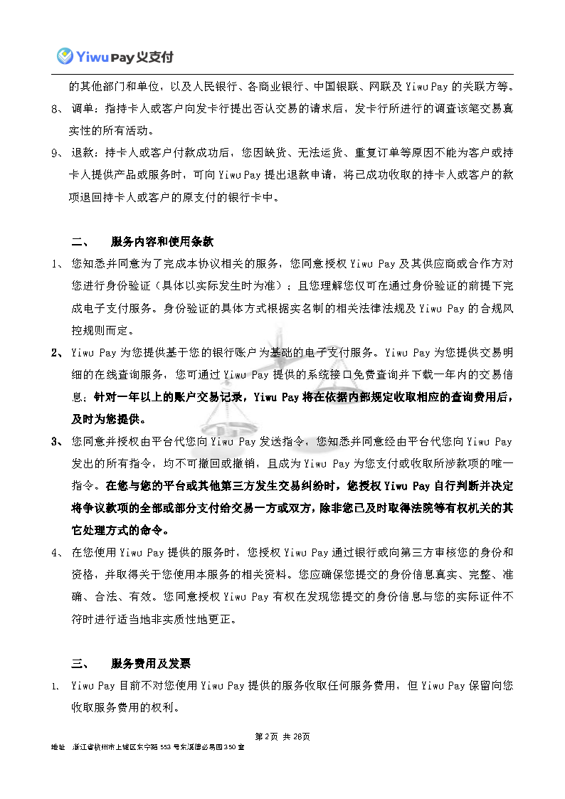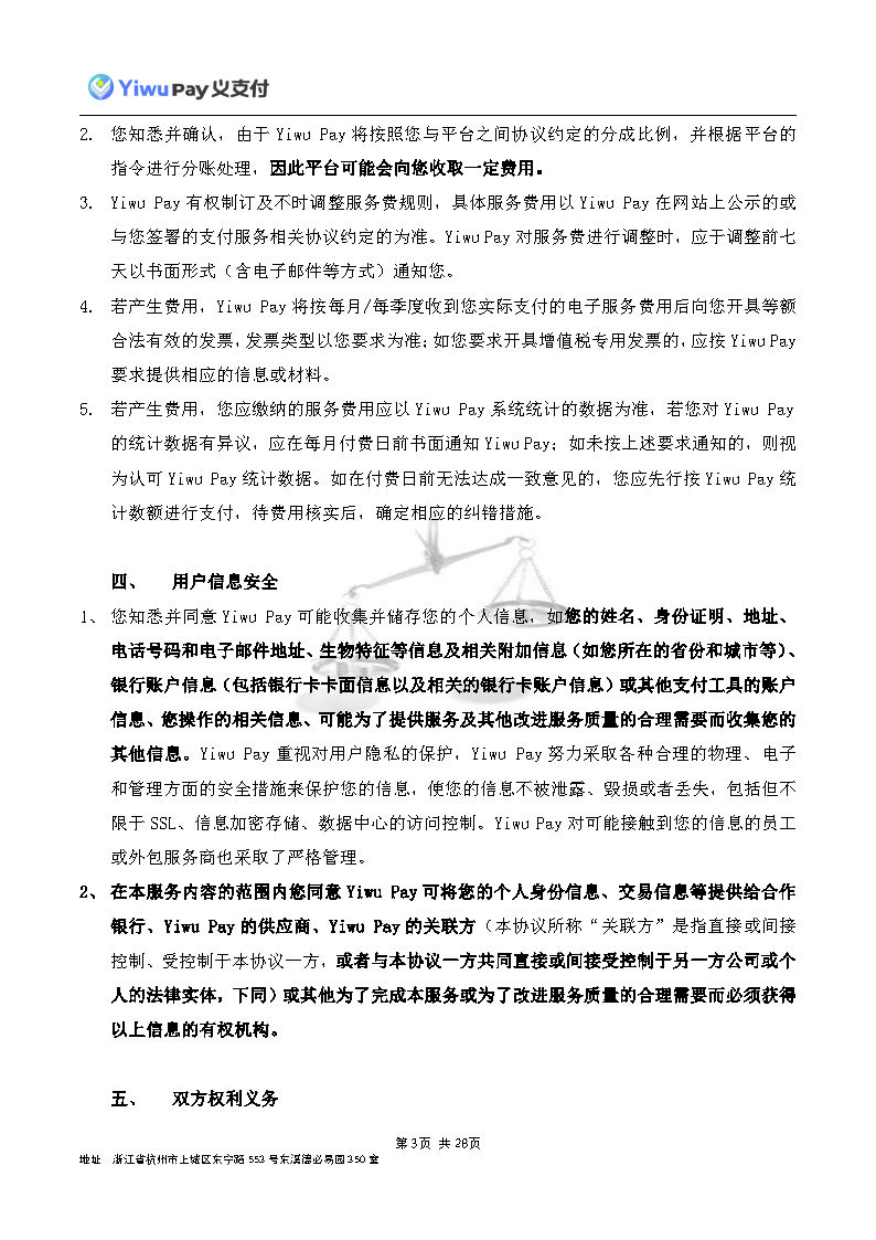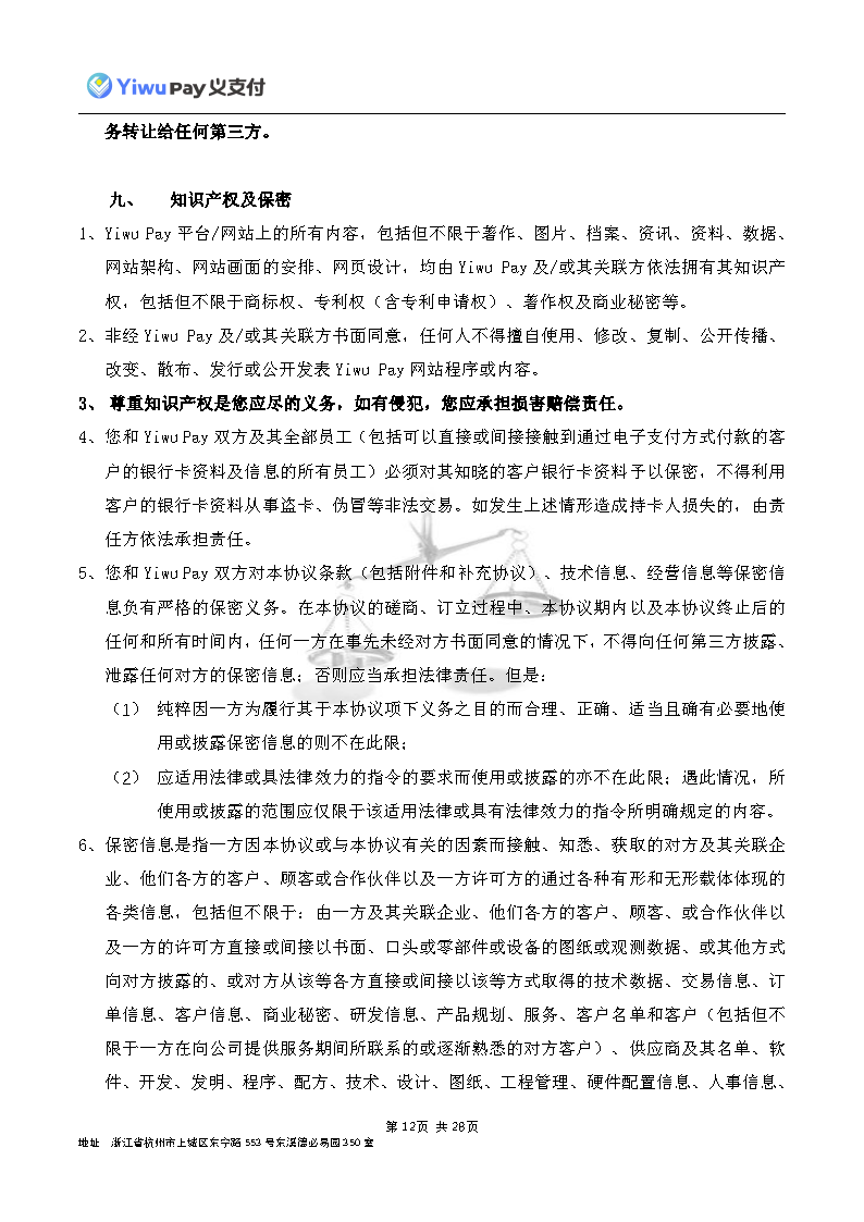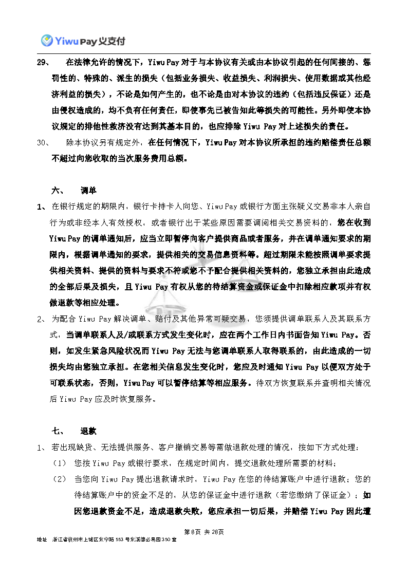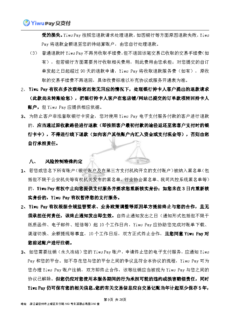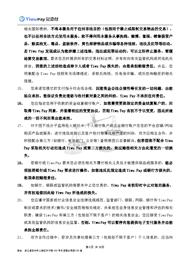 服务,切实保护您的合法权益,现依相关法规之要求,对本公司的《Yiwu Pay商户支付服务协议》内容进行变更。新协议将于公告之日起30日后生效,