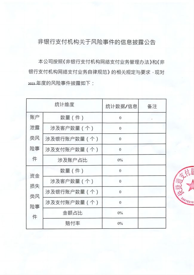 非银行支付机构关于风险事件的信息披露公告(2023年)